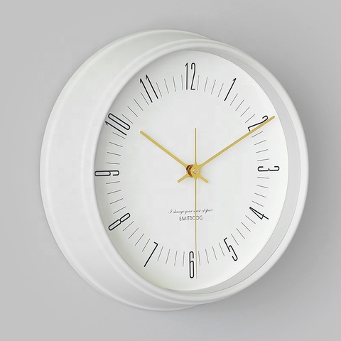 Emitdoog Klassieke Niet Tikkende Quartz Metalen Frame Glazen Wandklok Custom Ronde Glas Horloge Indoor Decoratie Moderne Wandklok