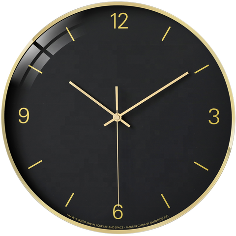 Emitdoog Vintage Stijl Zwart & Goud Glas Wandklok Voor Thuis Kantoor Decoratie, gouden Frame Met Helder Glas Klokken Groothandel
